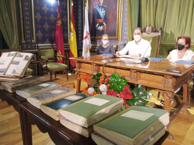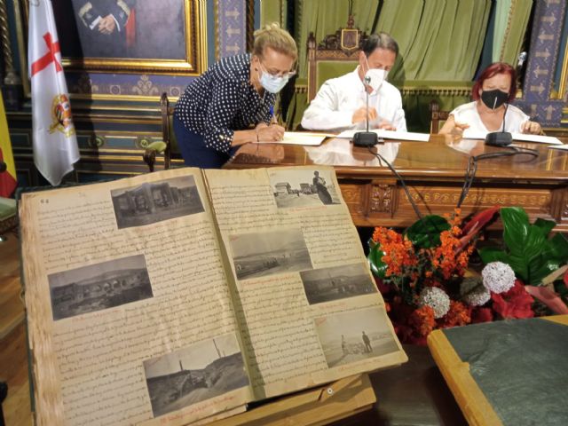 El Salón de Plenos del Ayuntamiento de Mazarrón fue el escenario donde se procedió a la firma del acuerdo por el que la familia Yúfera ha donado al Archivo Municipal un importante fondo documental. Gaspar Miras, alcalde de Mazarrón, la concejal de Archivo y Bibliotecas, Conchi Aparicio, y Carmen Yúfera, en representación de su familia; plasmaron sus firmas en el acta de depósito y gestión al Ayuntamiento de Mazarrón del 'Fondo Documental Mariano Yúfera Guirao-Carmen Yúfera Sánchez' coincidiendo con marco de la celebración del Día de los Archivos (9 de junio).