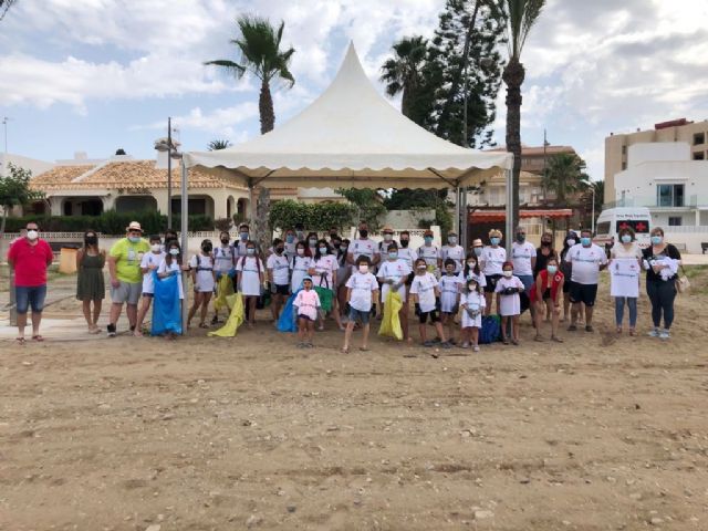 Cruz Roja Mazarrón y el Ayuntamiento de Mazarrón se han unido esta mañana para llevar a cabo una jornada medioambiental dentro del 'Proyecto Libera' que se ha celebrado hoy a nivel nacional con una limpieza en la playa de Playagrande en la que han participado tanto niños y jóvenes, acompañados de sus padres y madres.