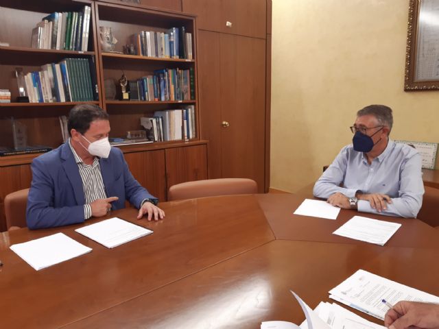 El Presidente de la Confederación Hidrográfica del Segura, Mario Urrea, acompañado por el Comisario de Aguas, Javier García, ha mantenido una reunión de trabajo con el Alcalde de Mazarron, Gaspar Miras, donde han tratado temas de interés municipal relacionados con la Confederación Hidrográfica del Segura.