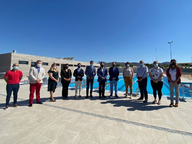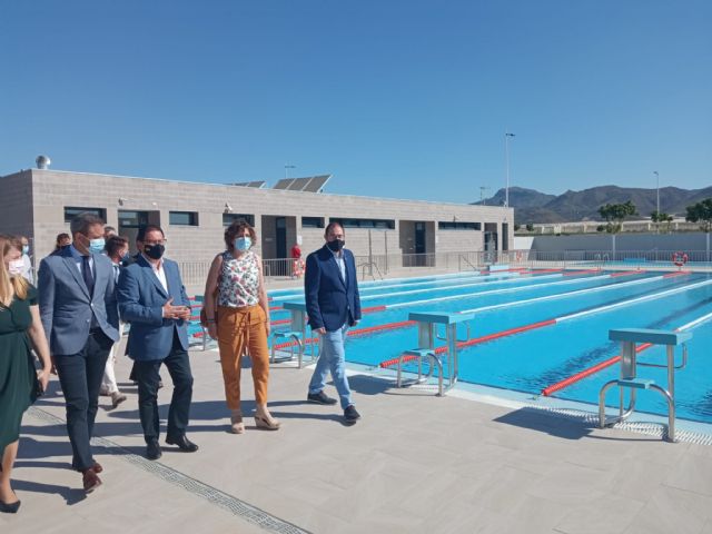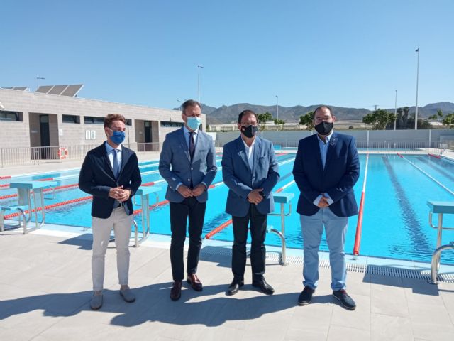 Esta mañana el alcalde de Mazarrón, Gaspar Miras, y el consejero de Presidencia, Turismo y Deportes, Marcos Ortuño; han inaugurado la piscina municipal situada en el Complejo Deportivo de la Media Legua, acompañados del concejal de Deportes de Mazarrón, Francisco José García, y el director general de Deportes, Francisco Javier Sánchez; así como otros miembros de la corporación municipal.
