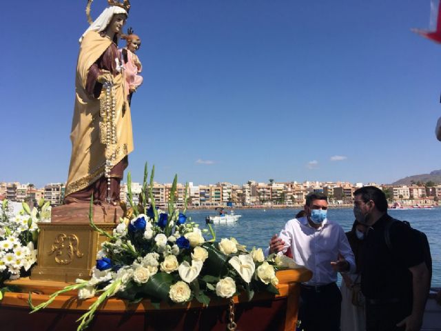 El consejero de Agua, Agricultura, Ganadería, Pesca y Medio Ambiente, Antonio Luengo, participó hoy en la tradicional procesión marítima de la Virgen del Carmen, celebrada en aguas de la bahía de Mazarrón por los pescadores de la Cofradía asentada en la localidad.