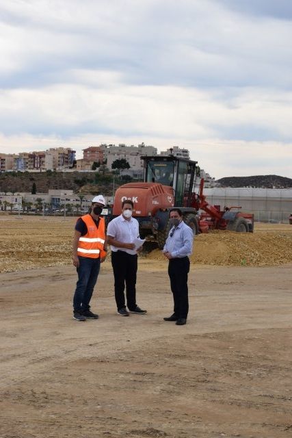 Esta misma mañana Gaspar Miras, Alcalde de Mazarrón visitaba las obras junto con Adrián Jorquera Gallego, Director Ejecutivo de la obra y Alberto Fernández, jefe de obra.