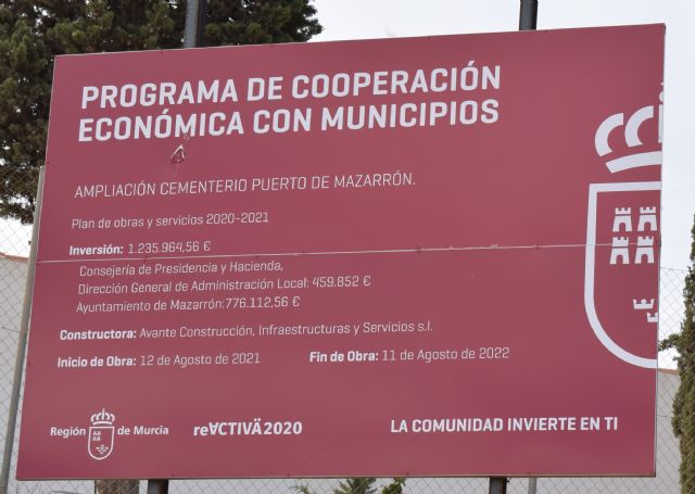 Las obras de ampliación del cementerio del Puerto de Mazarrón se iniciaban la segunda quincena del pasado mes de agosto. La falta de espacio es el principal motivo de esta ampliación, el espacio total  que se va a dedicar a esta ampliación es de 6.307 metros de superficie de actuación. La inversión por parte del Consistorio es de 776.112,56 euros.