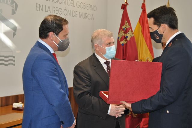 La Delegación del Gobierno esta misma mañana se ha concedido la Placa de Honor de la Delegación del Gobierno a Andrés Fernández Hernández, policía local de Mazarrón cuyo acto particularmente heroico, con riesgo notorio para su propia vida, permitió el pasado mes de marzo salvar la vida de un inmigrante a punto de ahogarse cuando naufragó la patera en la que viajaba. Al acto ha acudido el Alcalde de Mazarrón Gaspar Miras, estando presente a la entrega de la Placa de Honor.