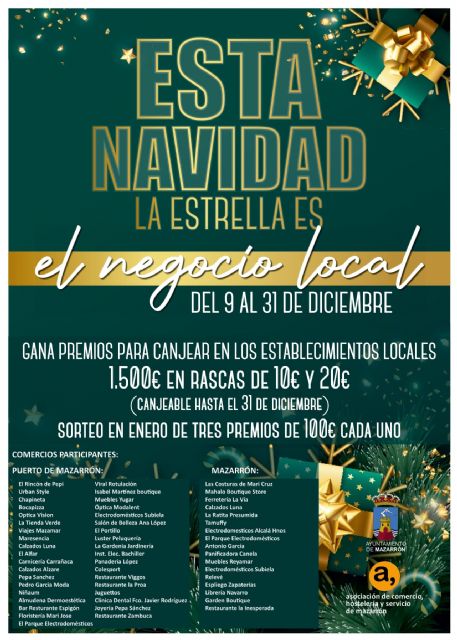 “En vísperas de Navidad queremos que se fomente el consumo en el pequeño comercio y para ello desde ACOMA se ha preparado una campaña de Tarjetas Rascas, animamos desde el Ayuntamiento de Mazarrón en la participación de esta campaña”.