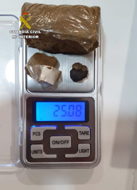 La Benemérita se ha incautado de 25 gramos de hachís, casi 500 euros en metálico y diversos envoltorios supuestamente utilizados para dosificar el hachís
