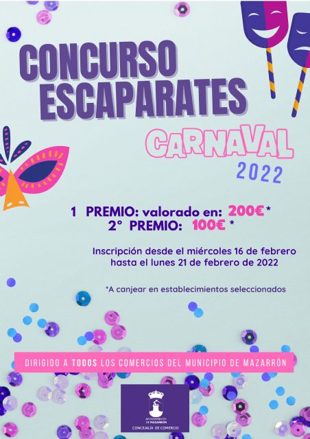 Los concursos de escaparates se realizan con el objetivo de fomentar y premiar a los establecimientos que, con su esfuerzo, mejoran la imagen del comercio y apoyan en su promoción, con una decoración especial de sus escaparates, creando así ambientes mágicos, coloridos y de fantasía.En esta ocasión, se otorgarán dos premios, valorados en 200€ el primer premio y 100€ para el segundo. Para inscribirse deberán acceder a la página web del Ayuntamiento de Mazarrón, donde encontrarán las bases y anexos para cumplimentar.