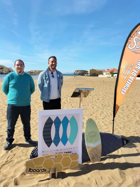 La Playa de Bahía de Mazarrón va a coger la tercera edición del evento de surf "Bahía Junior Series 2022". Ayer se presentaba este evento en la Playa de Bahía, bajo un clima espectacular, por parte del Concejal de Deportes del Ayuntamiento de Mazarrón, Francisco José García Ortega y José María Cascales, Presidente del Club Bahía Surf.