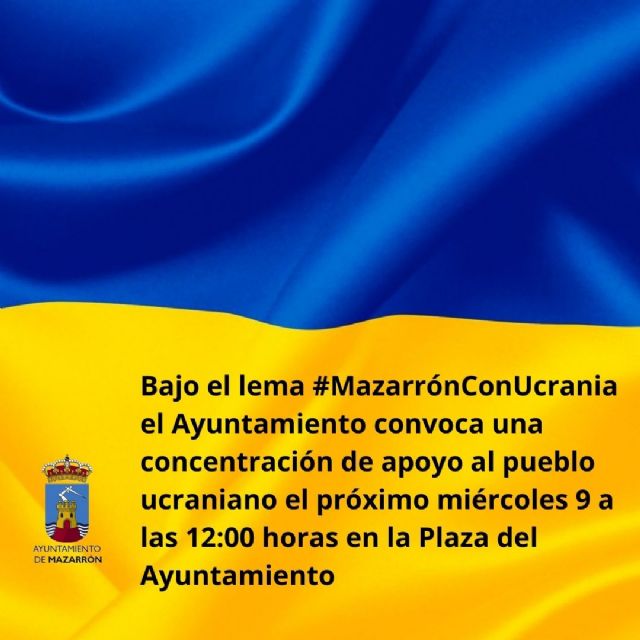 Bajo el lema Mazarrón con Ucrania el ayuntamiento convoca una concentración el próximo miércoles 9 a las 12.00h en la plaza del ayuntamiento
