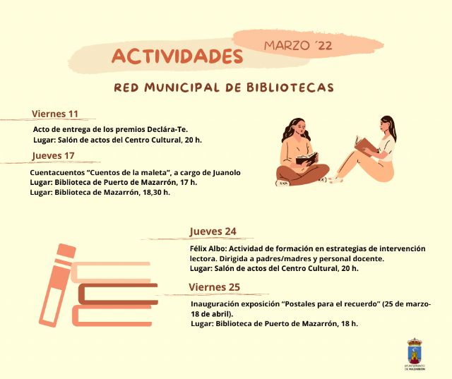 Consulta aquí las actividades de la red municipal de bibliotecas del municipio de Mazarrón durante el mes de marzo