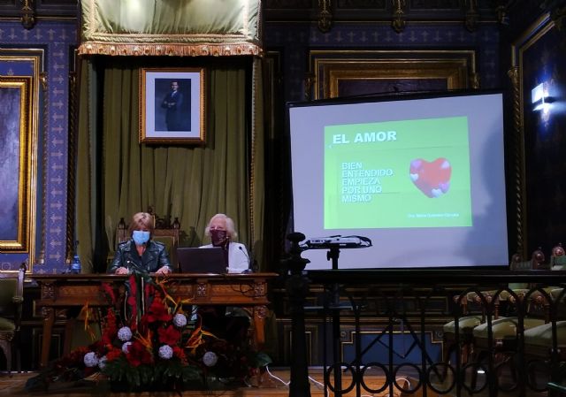 La Psicóloga y Presidenta del teléfono de la Esperanza en Murcia, María Guerrero, ofreció el pasado viernes una conferencia sobre 'EL AMOR ENTENDIDO EMPIEZA POR UNO/A' en el Salón de Plenos de Casas Consistoriales del Ayuntamiento de Mazarrón, con motivo de las actividades desarrolladas por el Día Internacional de la Mujer, bajo la coordinación de la Concejalía de Igualdad. Con ello, pretendió poner el foco en la única vía de salvación frente a las adversidades de la vida: el amor propio. Una charla que también sirvió para hablar de inseguridades y miedos que nos impiden a ser nosotros mismos.
