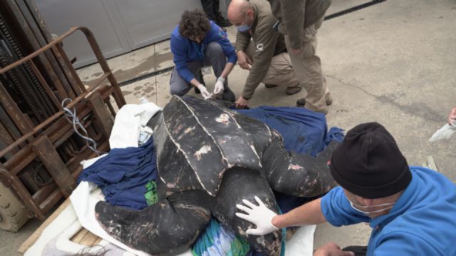 Rescatado un ejemplar de tortuga laúd en aguas de Mazarrón y trasladado al Oceanogràfic de Valencia para la recuperación de sus lesiones
