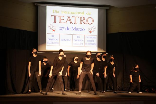 La Universidad Popular de Mazarrón celebró el pasado domingo, 27 de marzo, el Día mundial del Teatro en medio de una gran expectación, con la participación del IES Domingo Valdivieso, el IES Colegio Siglo XXI y la asociación ASPADEM.