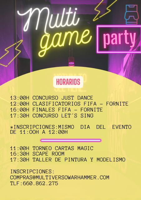 Otras de las actividades que necesitarán inscripción serán el torneo de cartas Magic, scape room y telaller de pintura y modelismo, para ellas deberán ponerse en contacto con Multiverso Warhammer a su correo compras@multiversowarhammer.com, o al número de teléfono 660 86 22 75