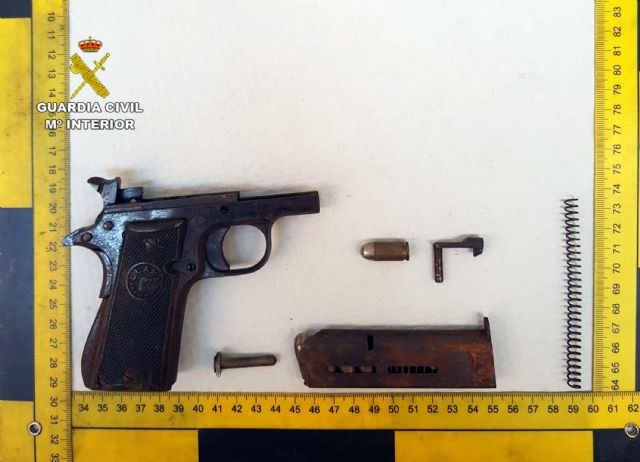 Durante el registro, los guardias civiles también hallaron una parte fundamental de un arma de fuego corta, de calibre 9mm, así como un cargador de ésta que contenía cuatro cartuchos, lo que denotaba la considerable peligrosidad del ahora detenido.