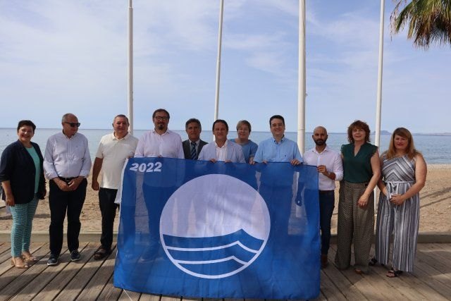 En el acto se hizo entrega del distintivo bandera azul a 27 playas de toda la Región de Murcia y 7 puertos deportivos, por lo que en la Comunidad se contará con dos banderas más que en 2021.