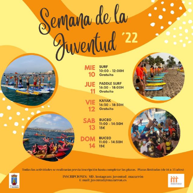 Las inscripciones pueden hacerse a través del correo juventud@mazarron.es o por Mensaje directo en el instagram de Juventud: juventud_mazarron