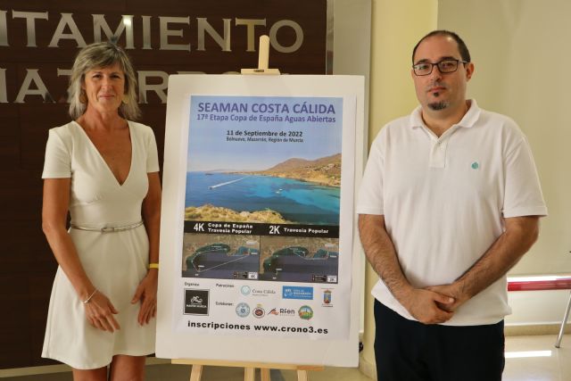 El próximo domingo 11 de septiembre se llevará a cabo en el litoral mazarronero la 17ª Etapa de la Copa de España de Aguas Abiertas La prueba organizada por el Club de Natación Master Murcia en colaboración con el Ayuntamiento de Mazarrón comenzará a las 10,00 en la explanada de las Erosiones de Bolnuevo (tras la recogida de dorsales de 8,30h a 9,30h) y contará con dos recorridos; uno de ellos de 2km (Travesía popular) y el otro de 4km que será la 17ª Etapa de la Copa de España de aguas abiertas y travesía popular