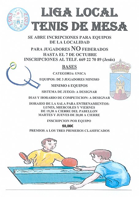 El Concejal de Deportes Francisco García y el Presidente del Club de Tenis de Mesa C.D. Mazarrón Jesús Catevilla, han querido animar a todos los deportistas que practiquen esta modalidad a inscribirse en esta primera competición que tendrá lugar en nuestro municipio.