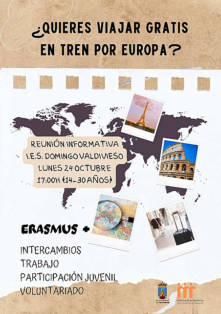 Si tienes entre 14 y 30 años, no puedes dejar pasar esta oportunidad. Acude a la reunión informativa, el lunes 24, a las 17:00h en el I.E.S. Domingo Valdivieso. Se proporcionará toda la información relevante respecto los programas disponibles, sus requisitos y cualquier duda que tengas para disfrutar de una experiencia que sin duda, marcará tu vida.