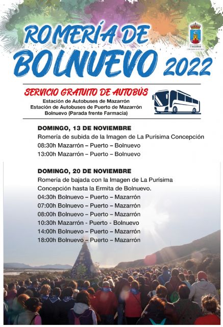 El Ayuntamiento de Mazarrón a través de la Concejalía de Festejos amplía para este año los servicios de autobuses gratuitos para la Romería de Bolnuevo