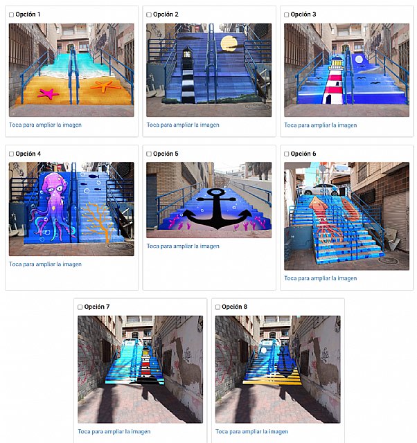 La Concejala de Agricultura, Pesca y Desarrollo Rural, Raquel Raja, ha hecho públicas las 3 opciones más votadas. Raja ha explicado “La opción 1 ha obtenido un total de 109 votos, lo que supone el 27.6%, la opción 4 ha obtenido 79 votos, un 20% y la opción 2 ha obtenido 53 votos que suponen el 13,4% del total. De este modo, estas opciones serán las que se llevarán a cabo en los próximos días, dotando a las 3 escaleras de acceso a nuestro Paseo de una estética renovada y vistosa que espero agrade a nuestros vecinos y visitantes”