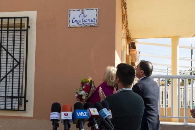 Esta mañana se ha celebrado el acto de inauguración de la Calle Cruz García a la que la restauradora mazarronera ha asistido acompañada de familiares y amigos