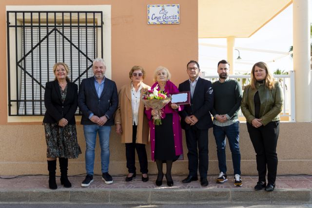 Mari Cruz García García ya tiene la calle con su nombre ubicada en su Bolnuevo natal La inauguración celebrada esta mañana ha contado con la presencia del Alcalde de Mazarrón Gaspar Miras, el Primer Teniente de Alcalde Ginés Campillo, el Concejal de Política Social y Festejos Miguel Ángel Peña y las componentes de la corporación Alicia Jiménez y María Isabel Vivancos además de familiares y amigos