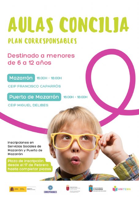Las aulas concilia se desarrollarán en las instalaciones del CEIP Francisco Caparrós (Mazarrón), CEIP Miguel Delibes (Puerto de Mazarrón) desde el 20 de febrero y hasta finales de mayo.
