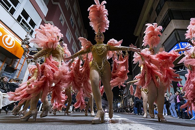 Un desfile mágico que contó con la participación de 14 agrupaciones que vistieron de alegría nuestra Avenida Constitución, ante un público que abarrotaba las aceras para disfrutar con ellos. Bailes, plumas, colores y mucha música convirtieron a Mazarrón en el municipio más alegre el pasado fin de semana.
