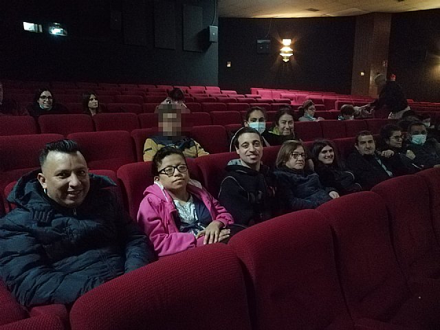 Disfrutaron de una comedia española donde las carcajadas no dejaron de oírse. Compartieron la sala con los compañeros de los Centros de día de Totana. La dirección del cine facilitó la proyección en una sala, adaptándola a sus necesidades.
