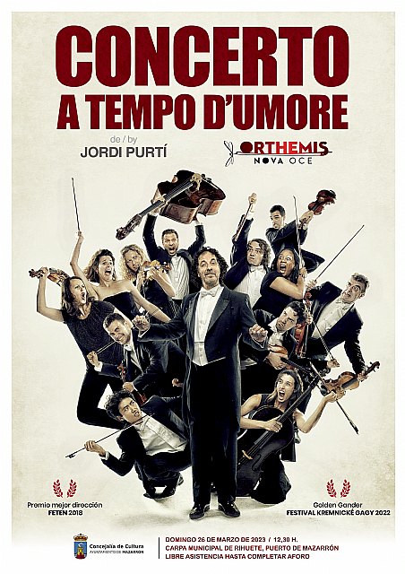 Concerto a Tempo D’Umore es un espectáculo participativo, capaz de entretener y complacer a todos los públicos. Todo ello bajo la garantía del autor y director del aclamado espectáculo Operetta, Jordi Purtí. El artista catalán es un versátil profesional que ha estrenado más de 65 espectáculos de los géneros más diversos: teatro de gesto, de texto, clown, ópera, danza contemporánea, etc. Actualmente, su “Operetta” se encuentra de gira por Europa después de hacer temporada en el Teatre Nacional de Catalunya, Victòria, Poliorama y el Theatre Antoine de París. Además de destacar la actuación en el Gran Teatre Liceu de Barcelona, esta representación ha obtenido un Premio UNNIM, un Premio Butaca y una nominación al Premio Max Revelación 2012.