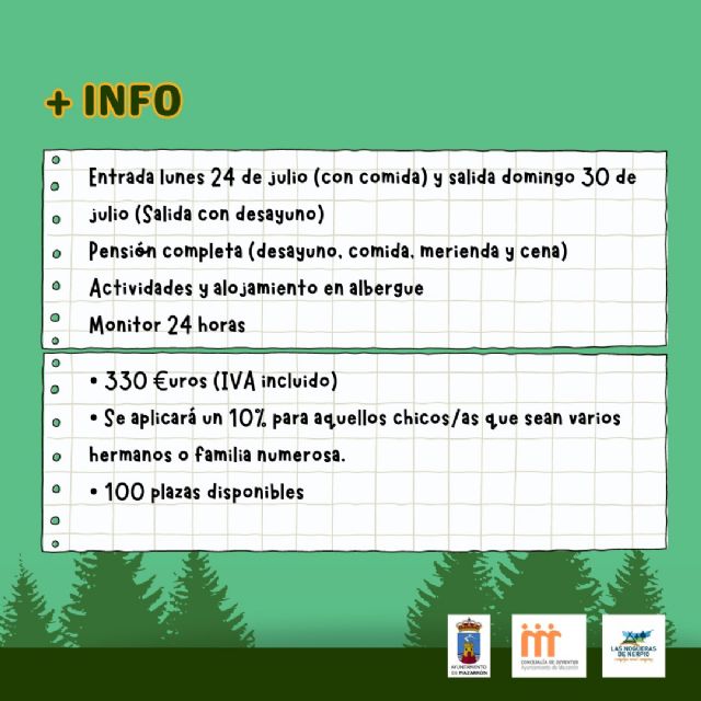 Del 24 de Julio al 30 de Julio, para jóvenes entre 7 y 17 años.. Las plazas son limitadas. Con un precio de 330€ (incluida pensión completa, actividades, alojamiento y monitores 24h).