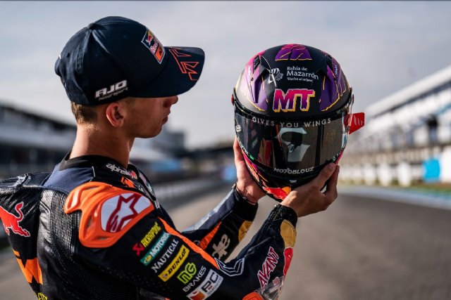 Pedro Acosta estrena en la Practice 3 del GP de España 2023 un diseño conmemorativo del clásico MT Jarama, un casco de enorme popularidad en los años 80 y 90.
