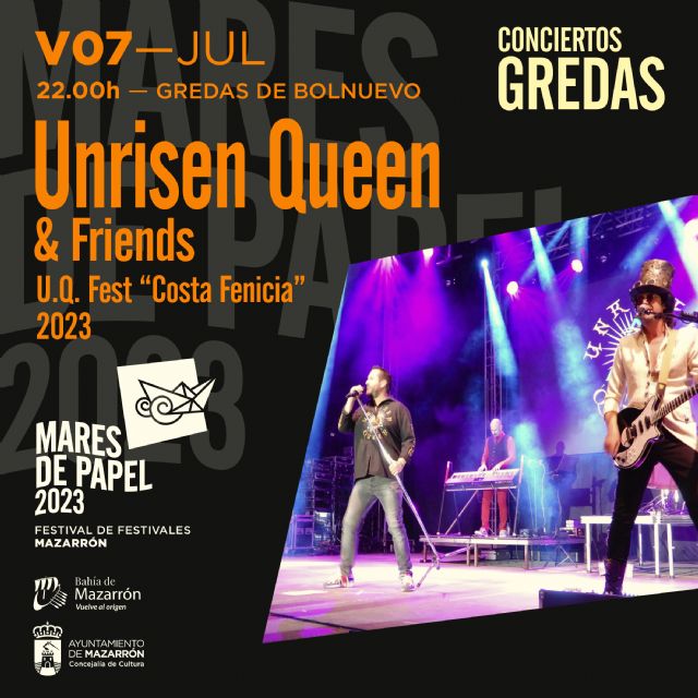 Jorge Durán, concejal de Cultura, ha anunciado que, tras el éxito del año pasado, vuelve a Mares de Papel el espectacular concierto de ‘Unrisen Queen & Fiends’. Será el próximo viernes 7 de julio a las 22:00 horas en la explanada de las Gredas de Bolnuevo con entrada libre hasta completar el aforo y, en esta edición, contará con servicio de barra. Durante la presentación del concierto ha estado presente también Frankchesco Di Napoli, bajista de Unrisen Queen, quien ha animado a vivir un concierto apasionante con la “actuación sorpresa de artistas nacionales e internacionales”.