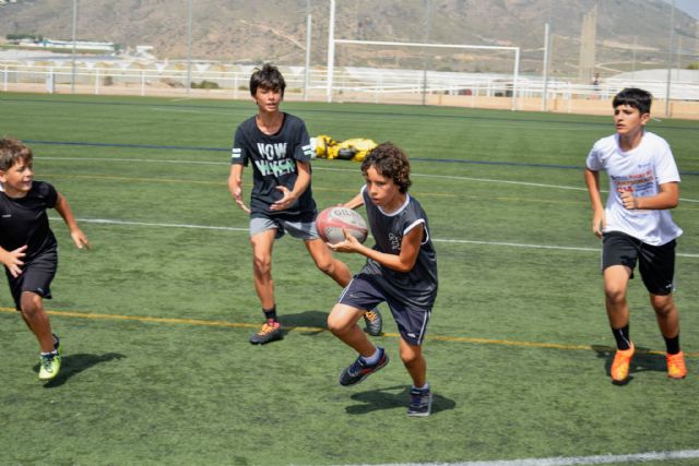 El Club Universitario de Rugby de la Región de Murcia (CURM), que preside Javier Jiménez Fontes, desarrolló en el Complejo Deportivo de la Media Legua la primera edición de un campus sobre esta disciplina deportiva en Mazarrón. "Estamos poniendo la semilla para intentar crear afición" explicó José Jara de Aula Veritas, entidad organizadora junto al CURM durante la clausura del evento por la concejala de Deportes, María Isabel Carillo, acompaña del edil Andrés Aznar.