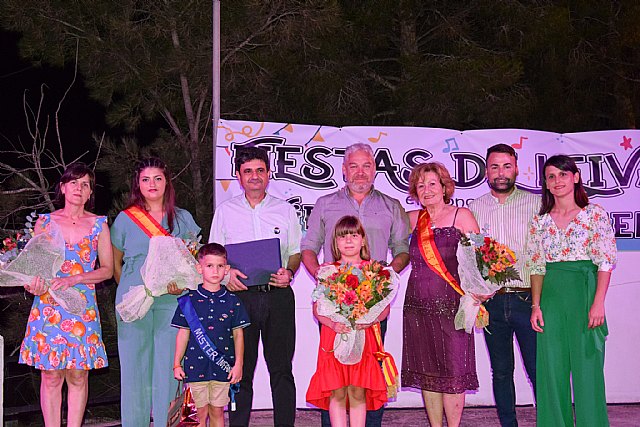 También, tuvo recuerdos para personalidades del lugar, como la maestra Isabel Zamora que a tantas generaciones formó. Combinó su discurso festero con un alegato por el futuro del mundo rural, en general, y del campo mazarronero, en particular. Terminado el pregón, el alcalde de Mazarrón, Ginés Campillo, y el concejal de Festejos y Pedanías, Miguel Ángel Peña, le hicieron entrega de una placa conmemorativa por su designación como pregonero. Acto seguido, la Comisión de Fiestas, representada por Eugenia Soler, dio a conocer los nombramientos de María José García como reina juvenil; Cristina Sánchez, como reina infantil; Pilar Jorquera, como reina de la tercera edad; y Enzo Rabal, como míster infantil.