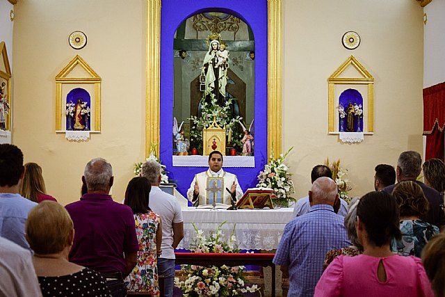 El día cumbre de las fiestas fue el domingo con la celebración de la festividad de la patrona, jornada que comenzó con la Santa Misa en la ermita al mediodía. Tras la celebración religiosa, la vecina Josefa Belmar Sánchez fue nombrada persona de mayor edad de la pedanía por sus casi 90 años de edad. El alcalde Ginés Campillo, la concejala de Mayores, Silvia García, y el edil de Pedanías, Miguel Ángel Peña, entregaron una placa de reconocimiento y un ramo de flores a Josefa Belmar.