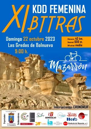 Se acerca la undécima edición de la KDD Femenina BTTras, que tendrá lugar en los impresionantes parajes de Mazarrón el próximo domingo, 22 de octubre de 2023. Este evento organizado por la Concejalía de Deportes del Ayuntamiento de Mazarrón promete ser un día emocionante de ciclismo de montaña para mujeres de todas las edades y niveles de habilidad.
