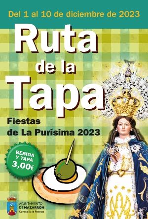 Del 1 al 10 de diciembre, la Concejalía de Festejos del Ayuntamiento de Mazarrón ha programado la Ruta de la Tapa de las Fiestas de la Purísima. Participan en ella un total de 15 bares y restaurantes para realizar un auténtico peregrinaje por lo mejor de la gastronomía local.