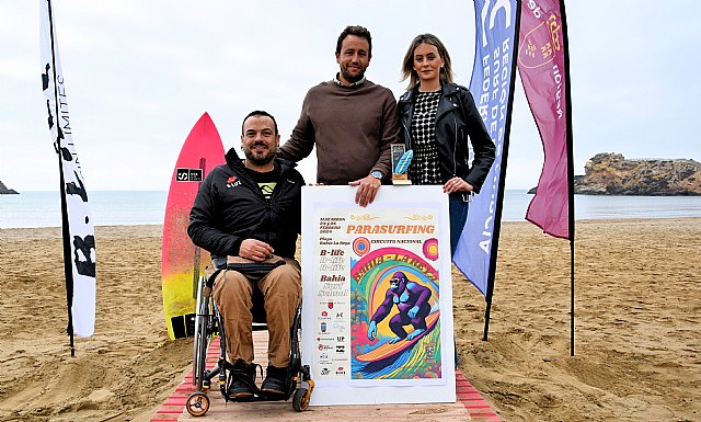 Llega la Copa de España de Parasurfing 2024 a Mazarrón. La encargada de presentar el evento ha sido María Isabel Carrillo, concejala de Deportes, junto a José María Cascales, presidente de la Escuela Bahía Surf, y Nacho Abad, presidente de B-Life. Este reconocido evento tendrá lugar en la Playa de Bahía del Puerto de Mazarrón los días 24 y 25 de febrero, y será un referente para el deporte adaptado.