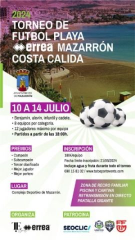La concejal de Deportes, María Isabel Carrillo, junto a representantes de Tato Sport Events, presentaron oficialmente el "Torneo de Fútbol Playa Mazarrón - Costa Cálida". Este evento se llevará a cabo en el Complejo Deportivo de Mazarrón, destacando su infraestructura adaptada especialmente para el fútbol playa.