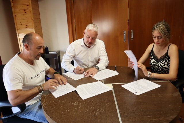 El alcalde, Ginés Campillo, junto con la concejal de Deportes, María Isabel Carrillo, ha firmado dos convenios de colaboración destinados a fomentar y apoyar el deporte y deportistas mazarroneros.