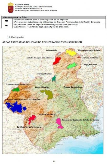 La organización recuerda, además, que la zona afectada se encuentra dentro de una de las 13 Áreas Esteparias contempladas en el Plan de Recuperación y Conservación de Aves Esteparias de la Región de Murcia, presentado en sesión del Consejo Asesor Regional de Medio Ambiente (CARMA), en marzo de 2018. Concretamente forma parte del área esteparia “Saladares del Guadalentín-Cañadas del Romero”.