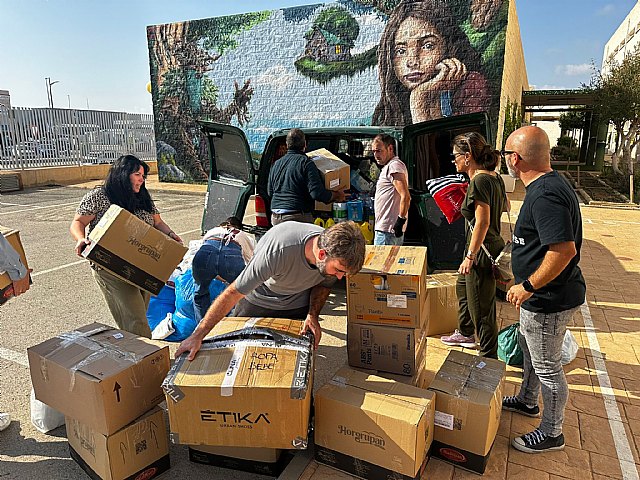 El municipio de Mazarrón ha enviado un total de 60 toneladas de alimentos, productos de higiene, limpieza, ropa, productos para bebés, comida para animales, mascarillas, frutas, etc...