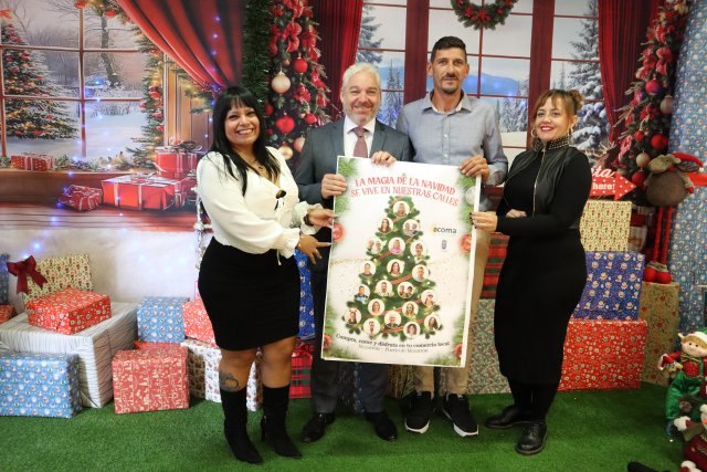 Ayer se presentó la programación navideña, que contó con la presencia del alcalde, Ginés Campillo, acompañado de Sandra y Resu, representantes de ACOMA, y Quique, de Demarfly. Una propuesta cargada de actividades para todas las edades que busca divertir y unir a las familias, a la vez que impulsa el comercio local.