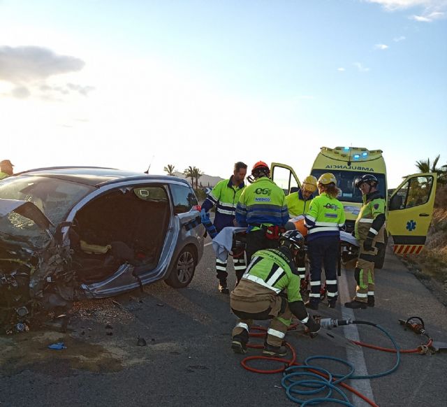 Tras la excarcelación de uno de los heridos por bomberos del CEIS, sanitarios han procedido a estabilizar y trasladar hasta el Hospital General Universitario Santa Lucía de Cartagena a un total de tres heridos de diversa consideración.