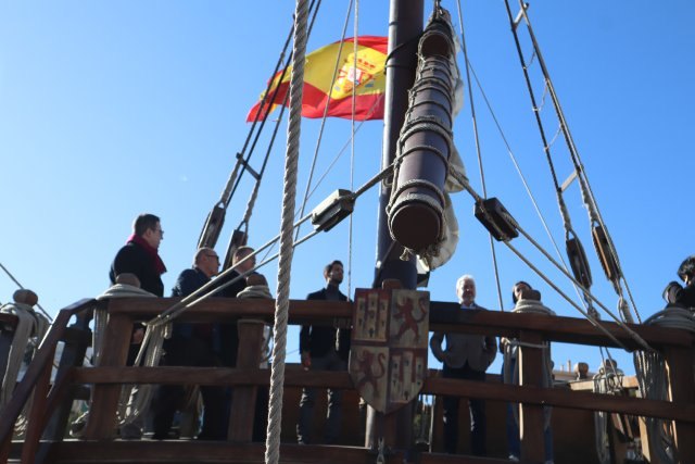 Ayer, el alcalde de Mazarrón, Ginés Campillo, junto con el concejal de Cultura, Jorge Durán, acompañados por el director general de Litoral y Puertos, el director general de Patrimonio Cultural y concejales de la corporación municipal, visitaron la réplica de la Nao Trinidad, que ha atracado en el puerto pesquero. Este emblemático navío, que recrea la embarcación que participó en la primera circunnavegación del mundo, llega a Mazarrón como parte de su gira por España tras más de tres años en Estados Unidos difundiendo esta increíble hazaña histórica.