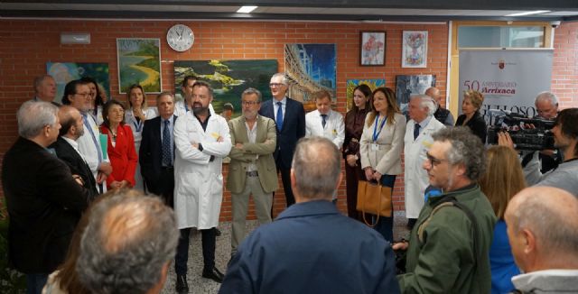 11.04.2025. El hospital Virgen de la Arrixaca acoge hasta el 31 de mayo la exposición de la asociación Médicos Artistas de la Región de Murcia, bajo el título 'Arte en el 50 aniversario', en el marco de la conmemoración del 50 aniversario del centro hospitalario. El consejero de Salud, Juan José Pedreño, inauguró esta muestra en la que 24 artistas, todos médicos en activo o jubilados, participan con 28 obras de tema libre.