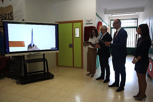 La jornada comenzó en el CEIP Ginés García Martínez, donde se inauguró oficialmente una nueva aula EDIT, un espacio diseñado para fomentar las competencias digitales del alumnado de Infantil y Primaria. Durante la visita, las autoridades pudieron comprobar de primera mano el excelente trabajo que realiza el centro en materia de innovación educativa. Los alumnos mostraron con entusiasmo varios de los proyectos tecnológicos en los que están trabajando, explicando sus procesos de aprendizaje, y entrevistaron a las autoridades a través de los canales escolares de radio y televisión, demostrando así su dominio de las herramientas digitales y su iniciativa.